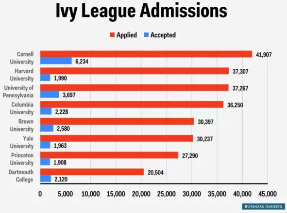 編者按:4月1日,常青藤盟校陸續(xù)公布2015申請季申請結(jié)果,多所名校刷新了錄取率新低,例如哈佛從去年的5.9%大幅降低至5.33%。