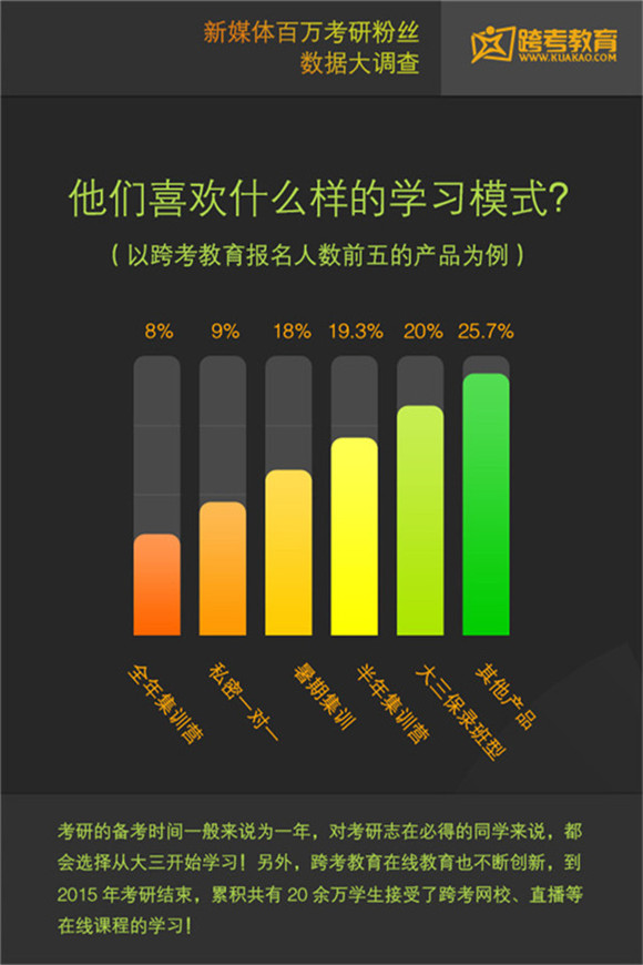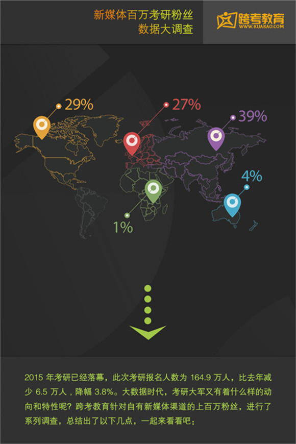 考研學生是培訓機構關注的重要群體之一。今日,跨考教育發(fā)布了一份考研學生調(diào)查報告,刻畫了考研學生的特征,在全國的分布情況,報考院校喜好等。這份報告基于跨考教育自媒體百萬粉絲。