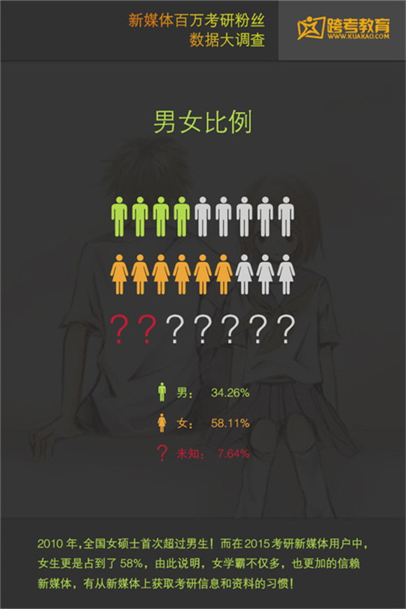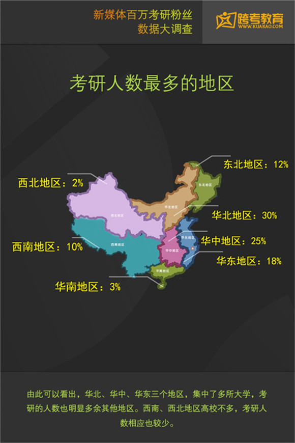 編者按:考研學生是培訓機構關注的重要群體之一。今日,跨考教育發(fā)布了一份考研學生調(diào)查報告,刻畫了考研學生的特征,在全國的分布情況,報考院校喜好等。這份報告基于跨考教育自媒體百萬粉絲。以下為報告摘選: