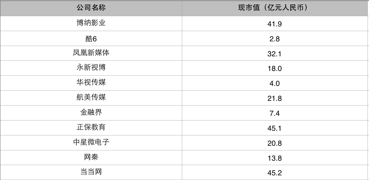 博納影業(yè)2014的營收近16億,市值折合人民幣42億,而營收24億的華誼兄弟市值達(dá)526億,營收12億的光線傳媒市值亦達(dá)416億。