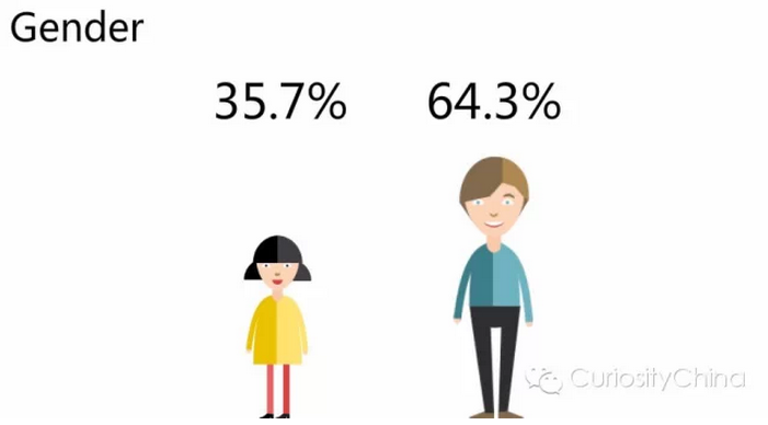 性別-男女用戶比例 64.3% :35.7% (約1.8:1),用戶以男性為主。