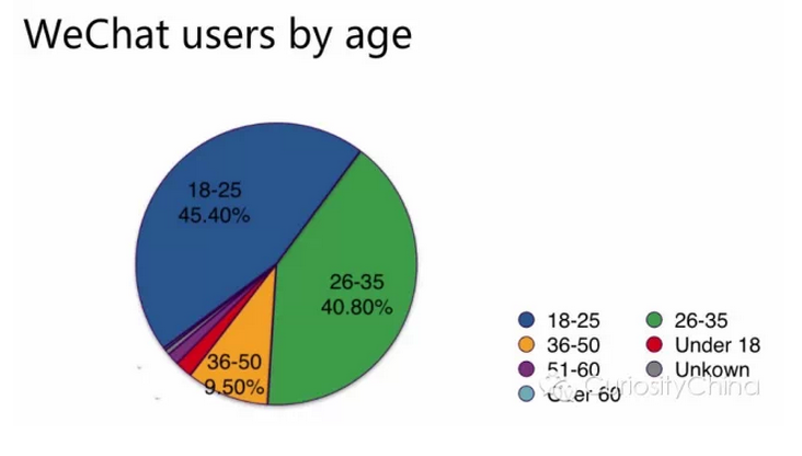在2015年第一季度末,微信每月活躍用戶已達(dá)到5.49億。男女用戶比例64.3% :35.7%,用戶以男性為主。微信用戶普遍年輕,平均年齡在26歲。絕大部分微信用戶的職業(yè)來自:企業(yè)職員、自由職業(yè)者、學(xué)生、事業(yè)單位員工這四類職業(yè)。80%中國高資產(chǎn)凈值人群使用微信。