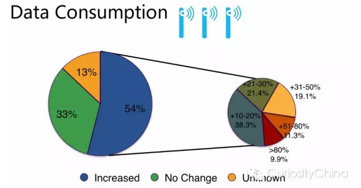 54% 的用戶認(rèn)為使用微信后,移動流量的用量增加了。