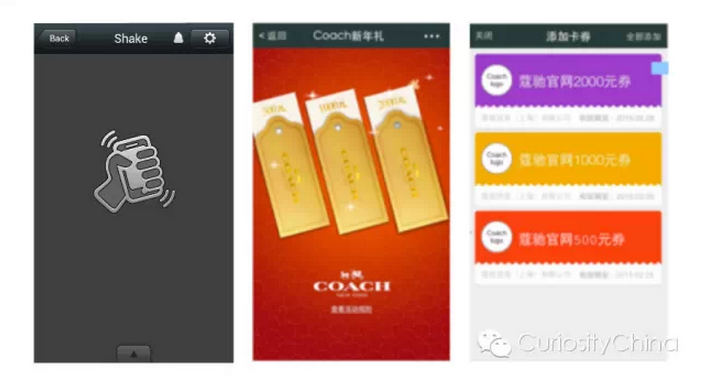 微信“搖一搖”功能也被擴(kuò)展,繼而使得商家可以為用戶提供優(yōu)惠券等促銷活動。