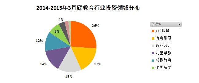 從上圖可以看出,教育領域的投資熱度集中在k12,語言學習,職業(yè)培訓。