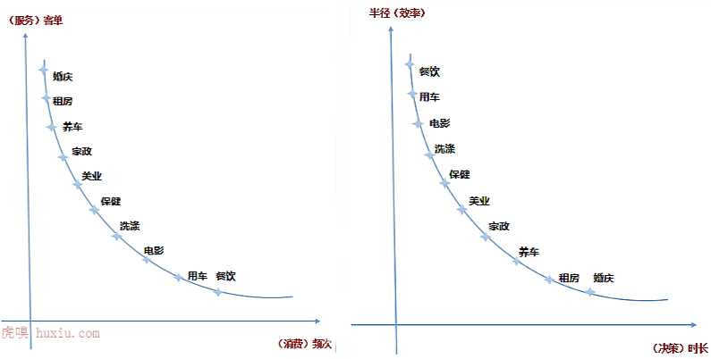 “消費(fèi)頻次越高,服務(wù)客單越低”對(duì)應(yīng)則是“決策時(shí)間越短,半徑效率約高”,反之亦然。