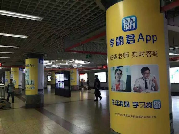 學(xué)霸君也如之前所計劃,上線了老師答疑版塊,學(xué)生拍照得到答案后,若仍然有疑問,可以點擊呼叫老師進(jìn)行詳細(xì)的白板+語音回答。地面廣告結(jié)合產(chǎn)品新功能,“生活找媽,學(xué)習(xí)找霸”的新廣告詞算是朗朗上口,估計學(xué)霸君的市場部同學(xué)為了這個廣告語掉了不少頭發(fā)。