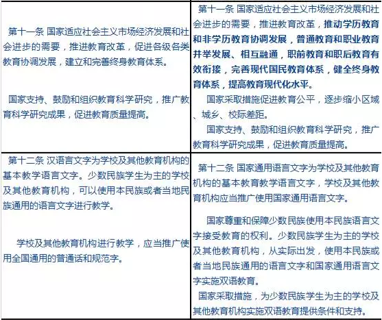 教育法案修正案條文對照表