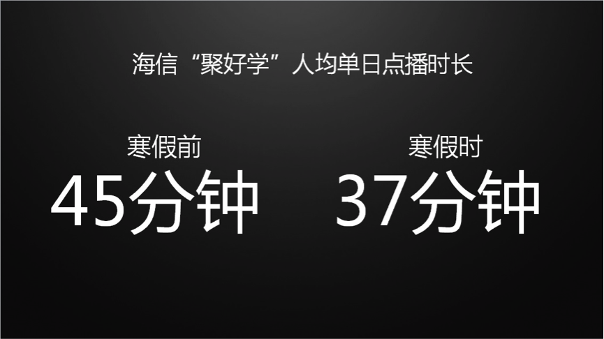 寒假期間,“聚好學(xué)”新增37.42萬(wàn)用戶;但人均單日點(diǎn)播時(shí)長(zhǎng)由寒假前的45分鐘降為37分鐘。