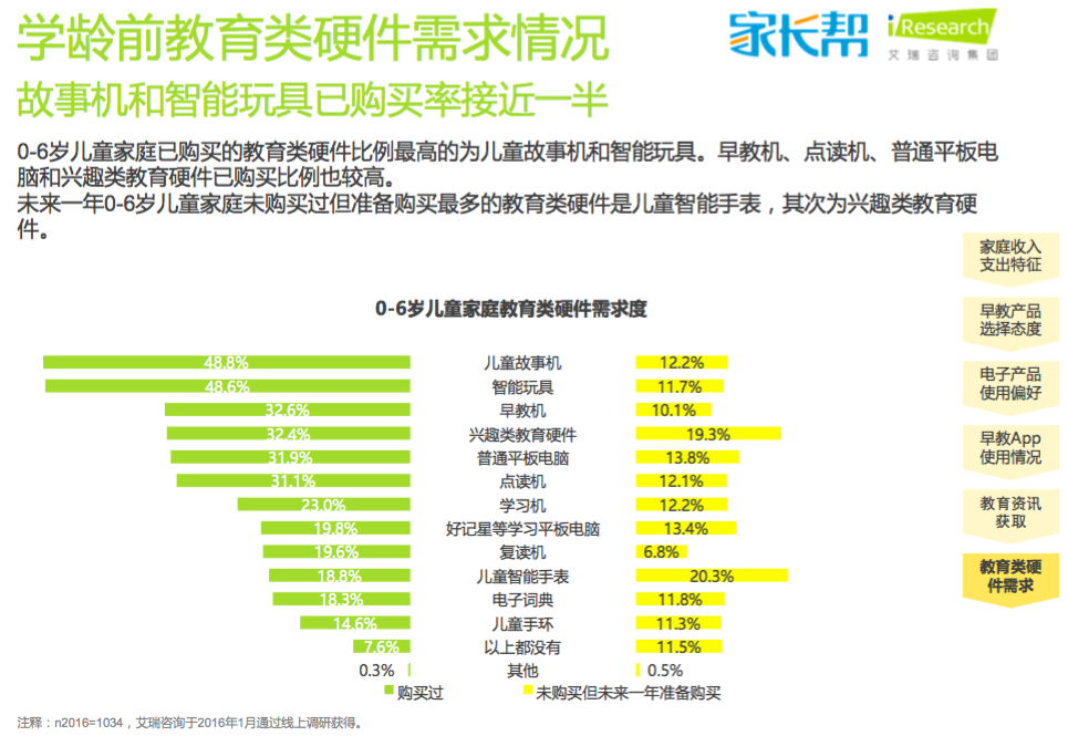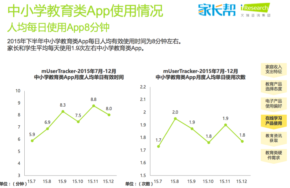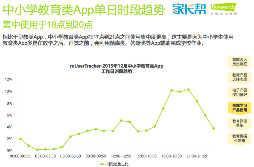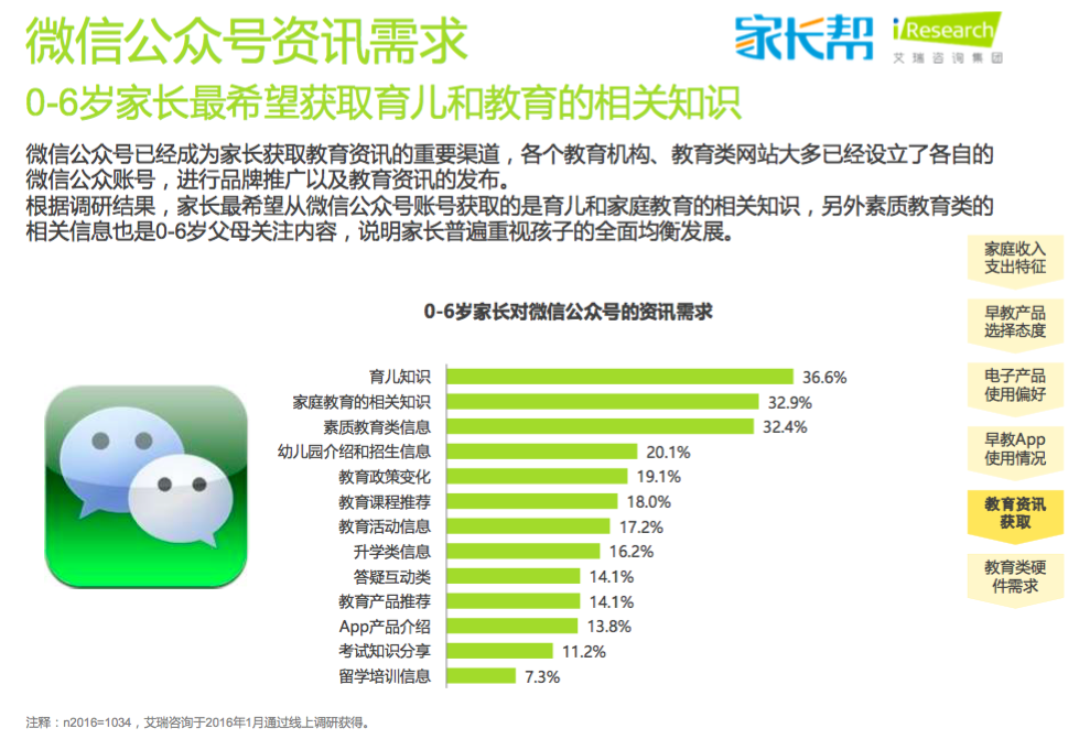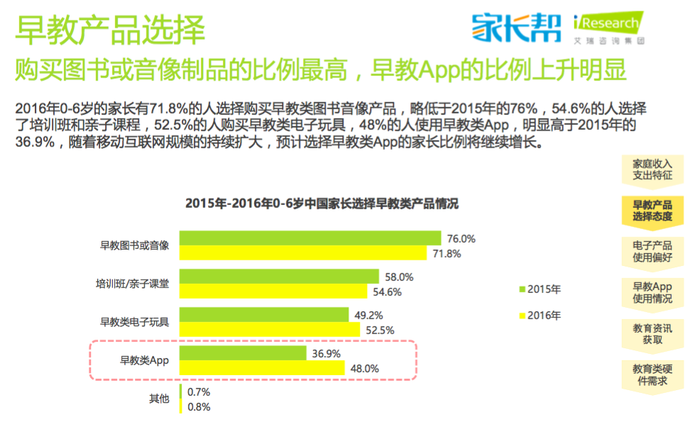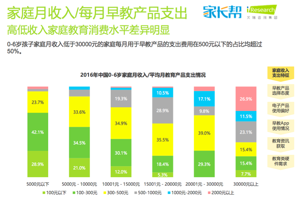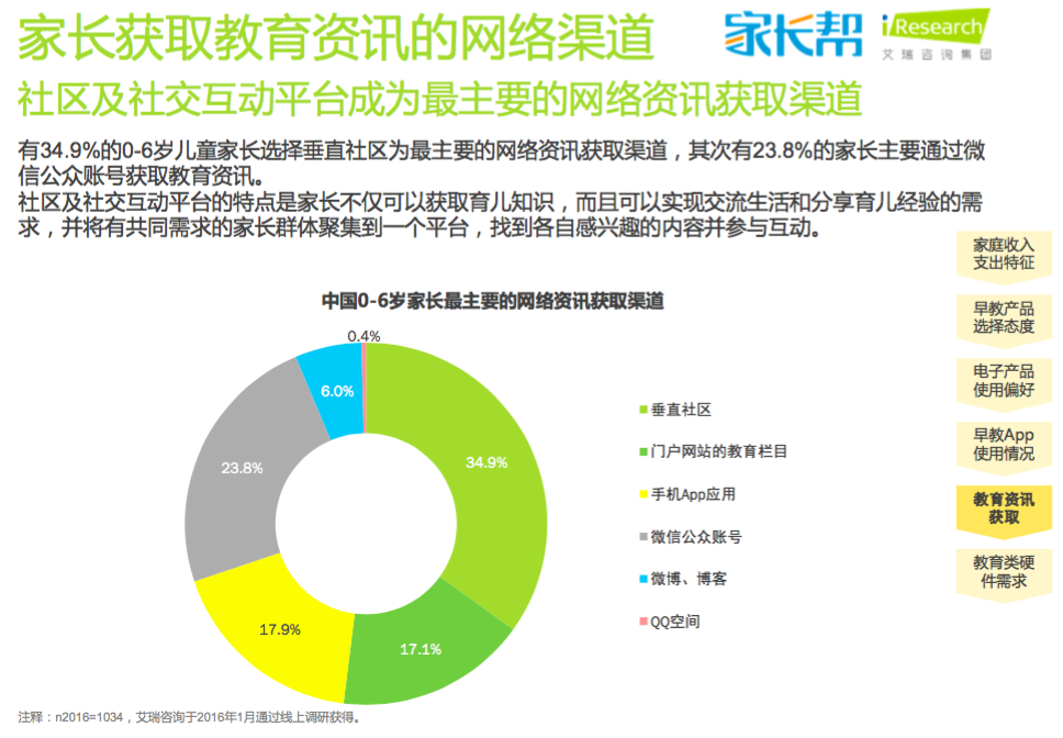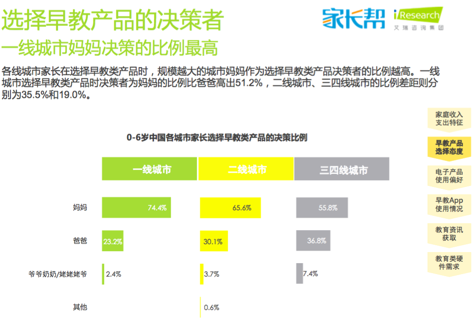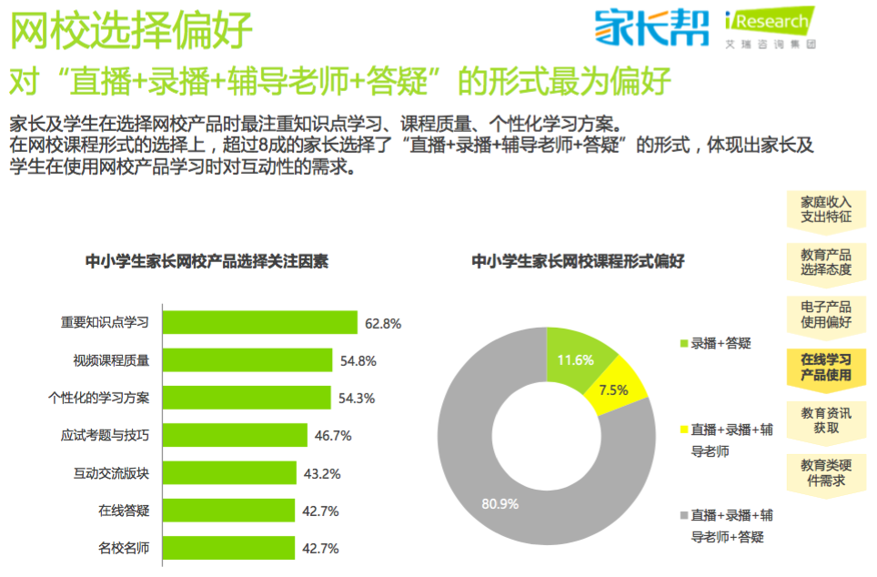 通過對樣本調(diào)查發(fā)現(xiàn),近七成家庭沒有二胎計劃;五成家長選擇在線學(xué)習(xí)產(chǎn)品;素質(zhì)教育與低齡留學(xué)漸漸成為家長教育新風(fēng)向。