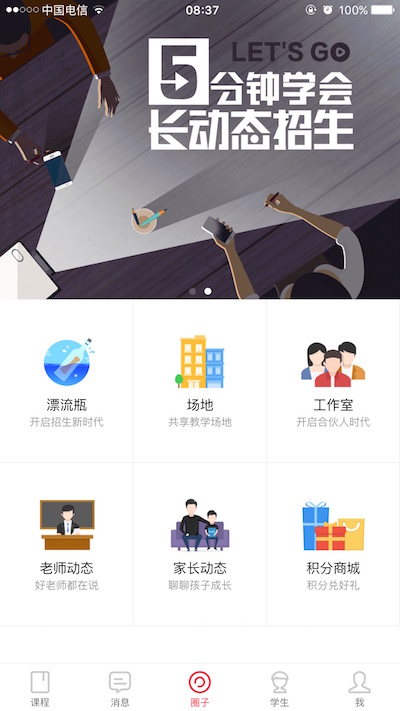 同樣是家教O2O公司的瘋狂老師,卻走向了另一條路。在老師服務(wù)方面,瘋狂老師一方面鼓勵不同科目老師成立小型工作室,做存量學(xué)生的擴科,另一方面,在教師端的升級迭代上下足了功夫,每周推出新版本。現(xiàn)在的瘋狂老師教師端,儼然已經(jīng)變成了一個細分領(lǐng)域的微信,聯(lián)系人、老師動態(tài)、找場地、換生源等功能一應(yīng)俱全。