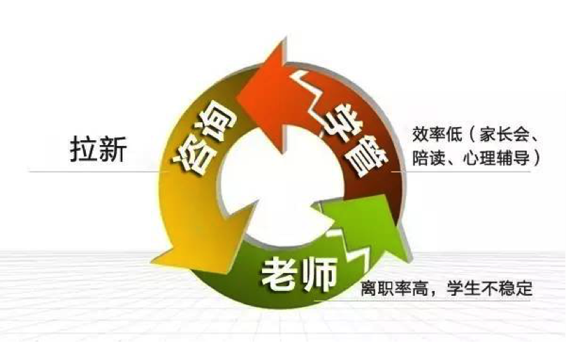 我們都覺得咨詢的作用是拉新,學管師的作用是續(xù)費,老師的作用是消耗。而且老師特別不靠譜!經(jīng)常要把學生帶回家上課!離職還一定把我們辛苦招來的學生帶走!所以要用學管阻隔!