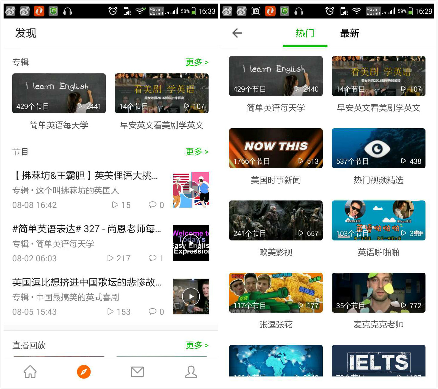 “專輯”欄目實際是短視頻入口。老師將有意思的視頻、新聞或電影做成系列上傳到b站、秒拍等視頻網(wǎng)站,用戶可以通過“專輯”直接進入收看。專輯中熱門或最新的視頻則可以在“節(jié)目”板塊中看到。