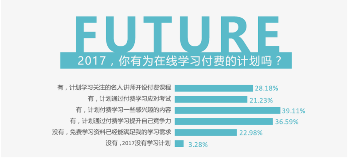 內(nèi)容優(yōu)質(zhì)、形式翻新的在線學(xué)習(xí)也激發(fā)了更多用戶的付費意愿。計劃在新的一年里繼續(xù)為在線學(xué)習(xí)付費的學(xué)習(xí)者占據(jù)了絕大多數(shù)。相較于往年,2016年在知識獲取形式不斷革新、知識劃分領(lǐng)域不斷細(xì)化、知識提供者的數(shù)量持續(xù)增加的環(huán)境下,“知識付費”在未來會獲得更多學(xué)習(xí)者的認(rèn)同,知識青年大軍也會持續(xù)增長。(多知網(wǎng) 黎珊)