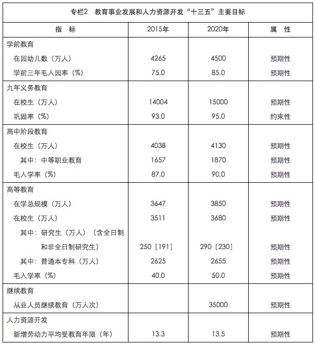 多知網(wǎng)對(duì)“十三五”規(guī)劃的主要內(nèi)容進(jìn)行了摘錄:
