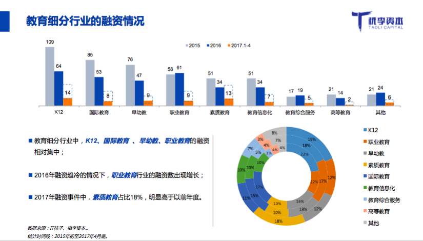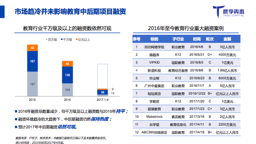 桃李資本合伙人郭西凡在活動中發(fā)布了《2017年教育行業(yè)融資并購報告》: