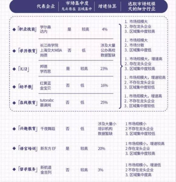 手冊(cè)中,對(duì)目前教育行業(yè)不同領(lǐng)域的數(shù)據(jù)、不同類型教育機(jī)構(gòu)的市場(chǎng)增速、集中度進(jìn)行了對(duì)比,并對(duì)不同種類教育的廣告投放難點(diǎn)做出了分析。