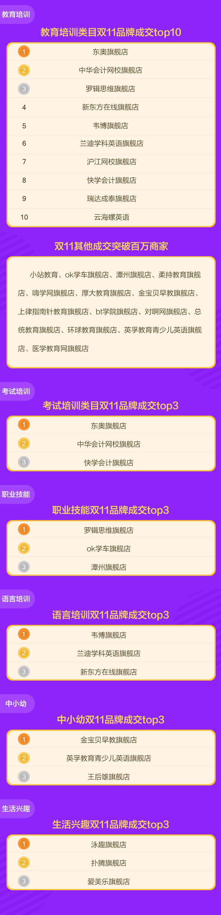 其一、商家結構出現(xiàn)變化,部分教育品牌單日成交突破千萬。