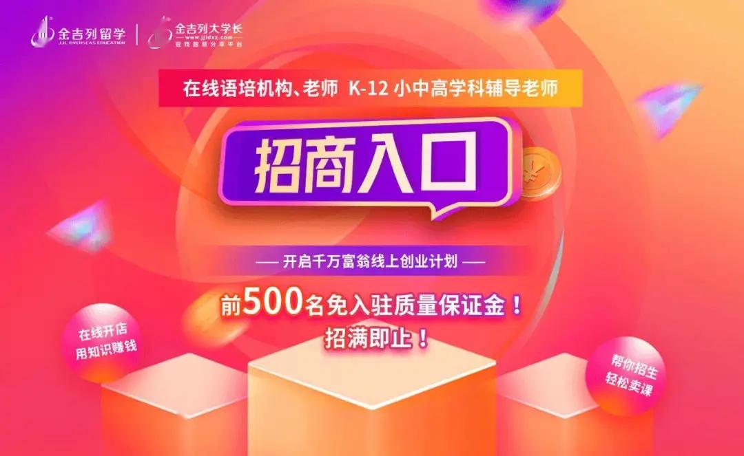 多知網(wǎng)5月8日消息,金吉列出國留學(xué)推出在線教育平臺(tái)金吉列大學(xué)長,平臺(tái)面向全國語言培訓(xùn)及K12學(xué)科輔導(dǎo)機(jī)構(gòu)及老師,啟動(dòng)“萬人創(chuàng)業(yè)扶持計(jì)劃”。