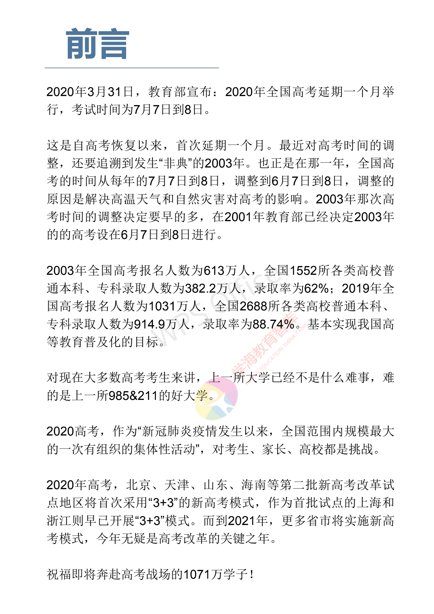 本文系學(xué)海教育智庫發(fā)布的一份名為《2020新冠肺炎疫情下的中國高考研究藍(lán)皮書》。