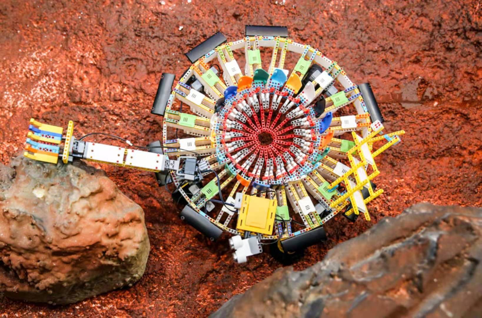 在中國科學技術館創(chuàng)意作品展區(qū),陳列著各地學生根據(jù)火星主題創(chuàng)作的機器人作品,如火星探索車、“諾亞方舟”等,它們造型獨特,能動態(tài)展示探測、變形等功能,展現(xiàn)了學生們對火星未來家園的奇思妙想。