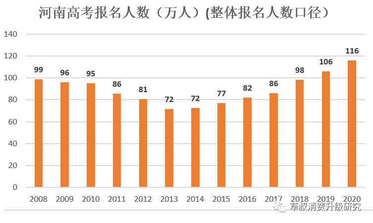 圖:2008-2020,河南省高考報名人數(shù)突破新高