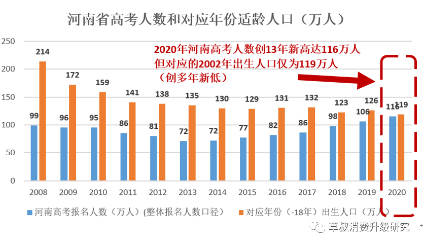 圖:2002年河南省出生人口創(chuàng)新低,但2020年河南省高考報名人數(shù)創(chuàng)新高
