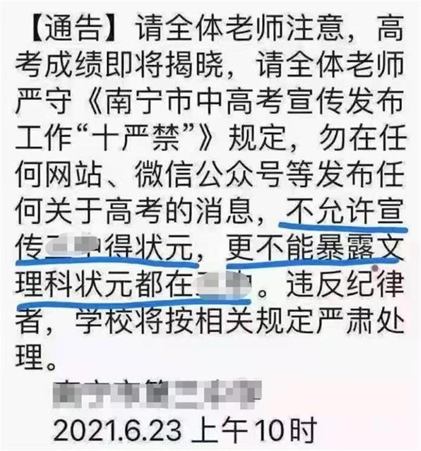 南寧市某中學(xué)發(fā)給中學(xué)老師的消息,可以說(shuō)是“反向炒作”。
