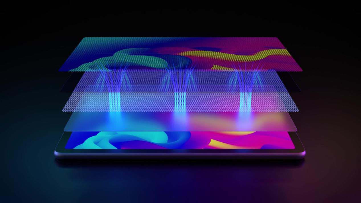 該技術(shù)通過DC調(diào)光技術(shù)、直流調(diào)光方式,實(shí)現(xiàn)穩(wěn)定光源無屏閃。輔以多層膜材柔化屏幕光線,過濾有害藍(lán)光,原彩顯示,柔和護(hù)眼不泛黃;表面采用霧化技術(shù)優(yōu)化HAZE參數(shù),將鏡面反射轉(zhuǎn)化成類紙面漫反射,進(jìn)一步減少外界眩光,以期實(shí)現(xiàn)接近書本紙張?jiān)谧匀还庀碌娘@示效果。