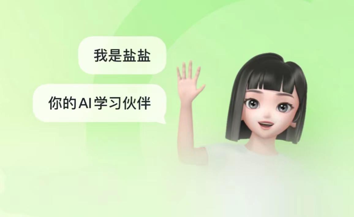 在“問答”頁面,一個名為“鹽鹽”的AI虛擬人充當(dāng)了伴學(xué)助手的角色,頁面支持語音和文字對話。