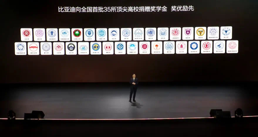 比亞迪董事長王傳福介紹,這30億元慈善基金中的一部分將分批捐贈給全國多所高校設(shè)立獎學(xué)金。發(fā)布會上,已正式啟動首批35所高校獎學(xué)金合作;