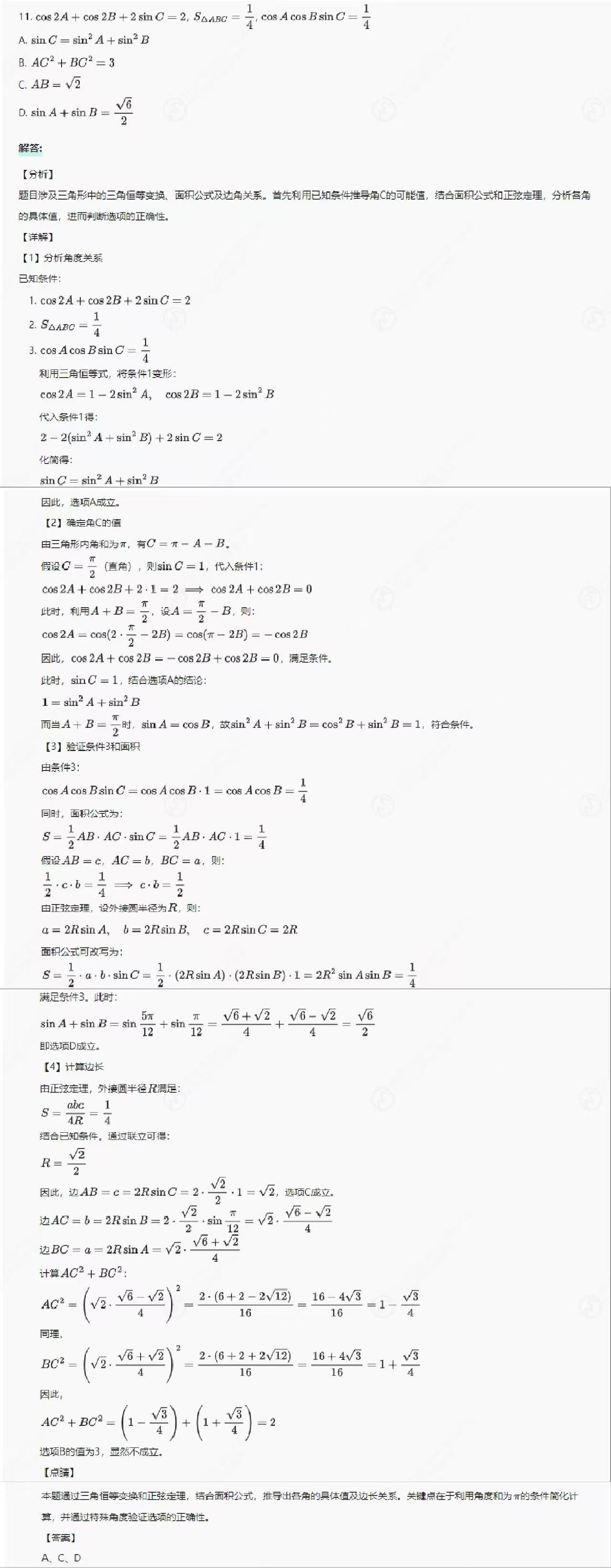 單選、多選的最后一題一般為該題型下最難的題目,大模型也完成了思考和計算,給出正確答案: