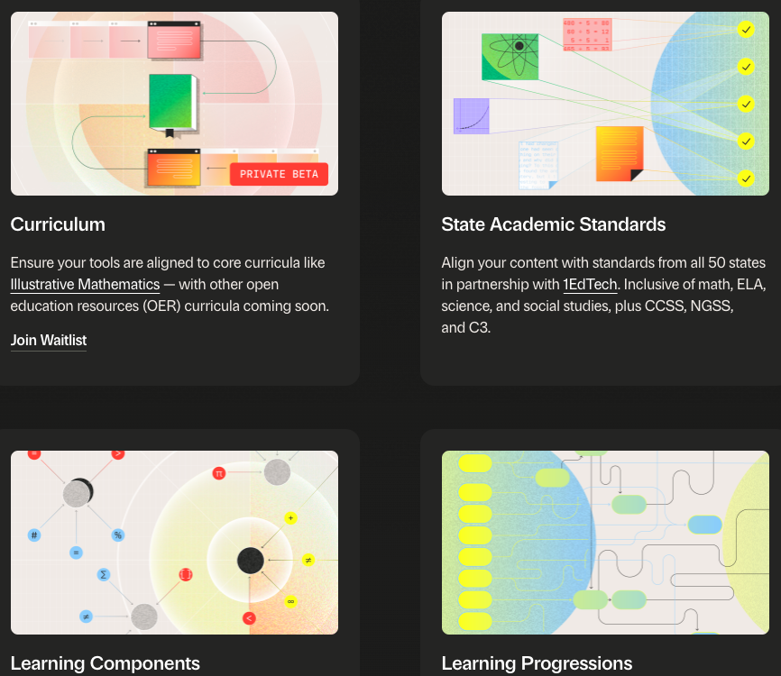 具體來看,Knowledge Graph目前涵蓋了全美50州四大核心學科——英語、數(shù)學、科學和社會科學(Social Studies)的學術(shù)標準,能幫助教師更好地組織和管理教學內(nèi)容。
