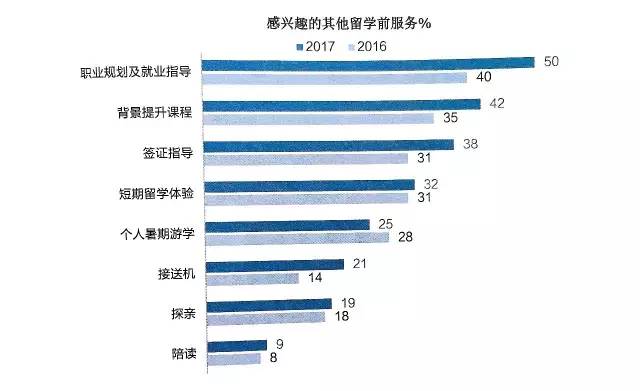在留學(xué)準(zhǔn)備期,有50%的學(xué)生希望接受留學(xué)服務(wù)的同時,得到職業(yè)規(guī)劃及就業(yè)指導(dǎo)的服務(wù)。
