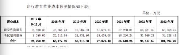 啟行教育對(duì)未來幾年各項(xiàng)業(yè)務(wù)的營收情況,做了詳細(xì)的預(yù)測(cè)。根據(jù)披露的數(shù)據(jù)得出,2017年、2018年和2019年,啟德教育營業(yè)收入增長(zhǎng)率為26.4%、15.31%和13.88%。