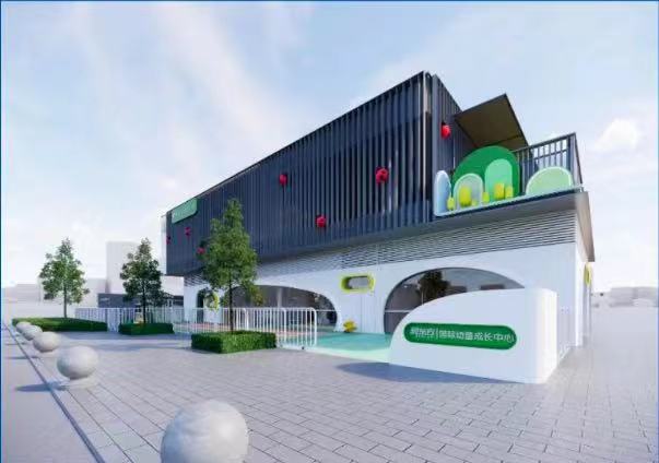 在功能分區(qū)上,室內(nèi)設(shè)置有藍(lán)白色球池、空中潛艇、滑梯、隧道、環(huán)形跑道和趣味攀爬區(qū),室內(nèi)配備有體能教室、北極熊繪本區(qū),此外還有陽(yáng)臺(tái)沙池區(qū)。