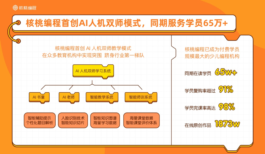 截止2019年8月,核桃編程已經(jīng)成為付費(fèi)學(xué)員規(guī)模最大的少兒編程教育機(jī)構(gòu),幫助超過65萬名孩子收獲學(xué)習(xí)興趣。
