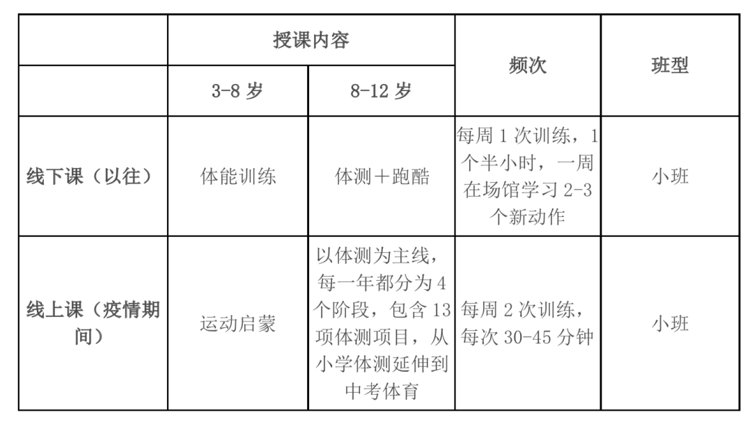“創(chuàng)造家長(zhǎng)的需求是不可能的。”孩子的時(shí)間有限,體能課要擠進(jìn)孩子的時(shí)間里,“要考慮就是線上如何能解決家長(zhǎng)的需求,而不是說你覺得現(xiàn)在教什么合適。”