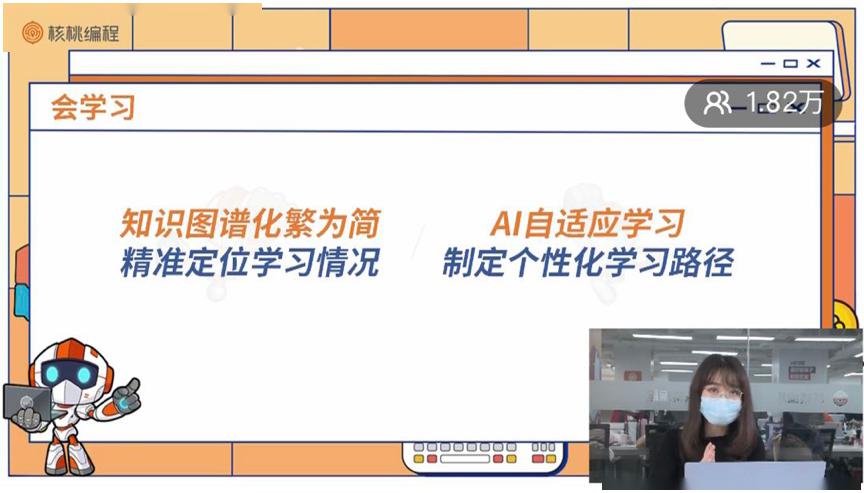 多知網(wǎng)4月29日消息,今日,核桃編程舉辦“核新升級(jí),學(xué)無止步”在線發(fā)布會(huì),正式宣布產(chǎn)品的全面升級(jí),近2萬人線上觀看直播。核桃編程此次升級(jí)覆蓋教研與服務(wù)產(chǎn)品兩大方面,其中,AI人機(jī)雙師系統(tǒng)、知識(shí)結(jié)構(gòu)與情境化教學(xué)實(shí)現(xiàn)重點(diǎn)創(chuàng)新與突破。同時(shí),核桃編程圍繞“讓家長(zhǎng)更安心、省心、放心,陪伴孩子更貼心”展開一系列教學(xué)服務(wù)端升級(jí)行動(dòng),還引入了“神秘家長(zhǎng)”課程導(dǎo)師服務(wù)品控機(jī)制。