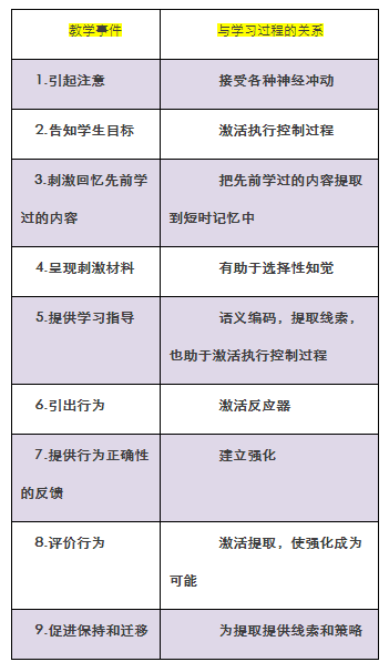 外部教學(xué)活動與學(xué)生內(nèi)部活動的對應(yīng)關(guān)系見下表: