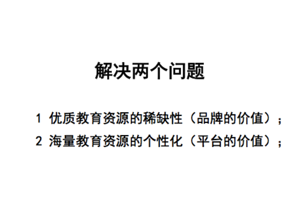 第二個問題,教育的核心本質(zhì)是優(yōu)秀教育資源的不可復(fù)制,這件事情是核心本質(zhì)。即使對于學(xué)而思提供的所謂標(biāo)準(zhǔn)質(zhì)控,好老師是可遇而不可求,好老師班你是報不上的,公立學(xué)校也是一樣。在需求和供給教育資源之間的矛盾永遠(yuǎn)存在,優(yōu)秀的老師在定點(diǎn)定時,定場合的情況下,他的時間如何通過其他的方式能夠有效放大并且服務(wù)更多的學(xué)生。這件事情是我們思考的問題。