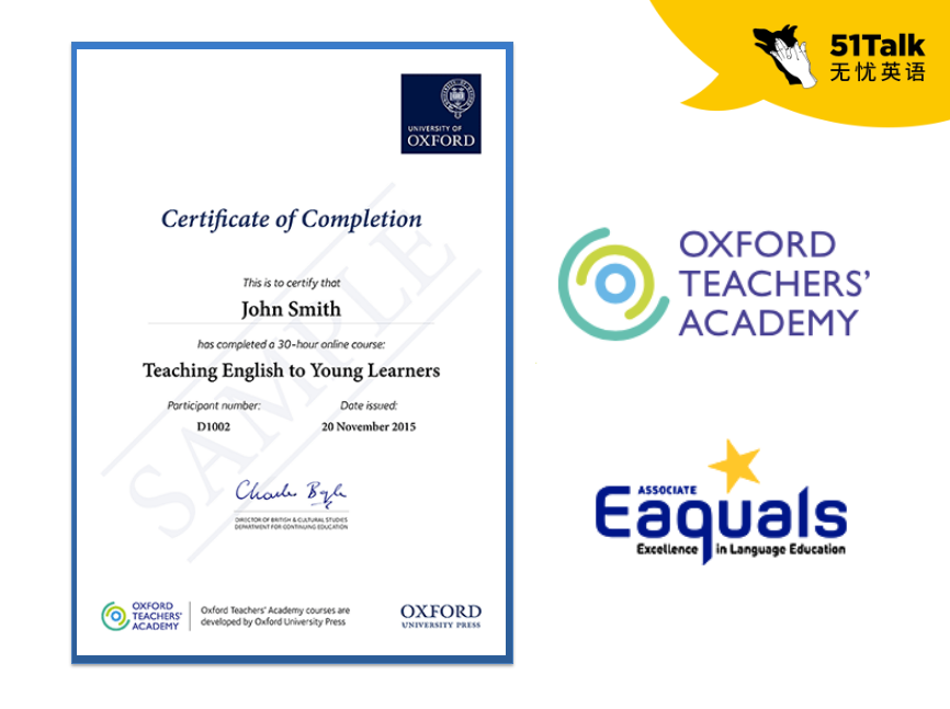 我們的理念是讓孩子既覺得有趣,又學(xué)得會。學(xué)得會是我們很重要的一個教學(xué)目標(biāo),我們不想讓孩子在我們學(xué)習(xí),只是覺得在51Talk上課很有意思很好玩。我們希望孩子在51Talk上課是因為會覺得自己很牛,同時覺得很愉悅,有成就感,那么我們就不斷給他創(chuàng)造這種成就感。